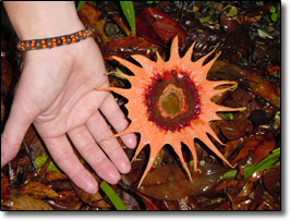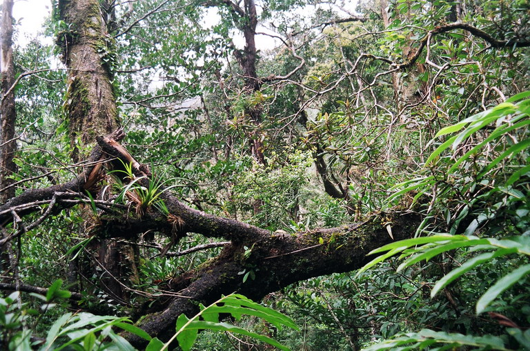 At 4095 m, the massive Mt. Kinabalu soars above the surrounding country. From the park headquarters, the summit ridge looks like a giant theme park, full of strange, polished rock formations. Every day hundreds of tourists, mostly Asians, climb the summit. To avoid the crowds, we stayed at the Mesilau station. At 2000m, Mesilau is the start of an alternative trail to the Kinabalu summit and also the only place to see the largest species of pitcher plant, the Nepenthes Raja. A knowledgeable ranger took us to see the plants. After unlocking the gate leading to the trail, we climbed an exposed hillside. In the scrub sat large, pot-shaped pitchers, big enough to put your fist in. The ranger also pointed out a slipper orchid, one of the most beautiful - and most wanted by collectors. As we made our way back to the station, clouds rolled in and it started to rain.