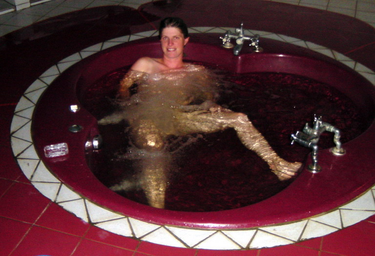 We stopped at Laban Rata to have breakfast. Then we headed back to Mesilau. As we climbed down the steep trail, it was hard to believe that we had climbed so much the day before. The trail seemed to go on and on. Our legs creaked as we descended onto a high ridge, then into a steep valley. We crossed a bridge and then climbed up again before the final descent to Mesilau, where we grabbed our bags and hitched a ride straight to the Poring hot springs . We rented a private room and relaxed our aching legs in the hot, soothing water. Our tub was shaped like a giant Raffalesia flower!